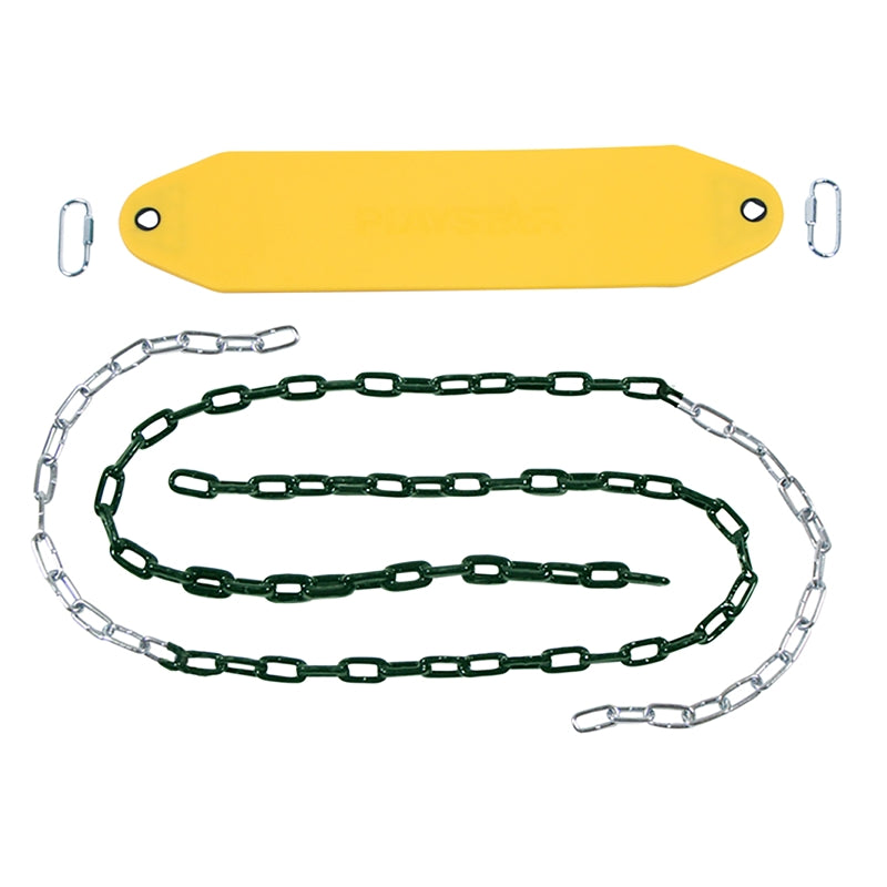 PlayStar's PS 7948 Swing Seat is a soft rubber coated belt swing with heavy-duty welded chains that will give your child hours of swinging, soaring fun on any playset. The swing seat comes with two welded quick-link connectors for easy hanging so your little ones will be able to jump on and enjoy in no time. Proudly made in the USA and comes with a 10 year warranty. PS 7676 Swing hangers sold separately.