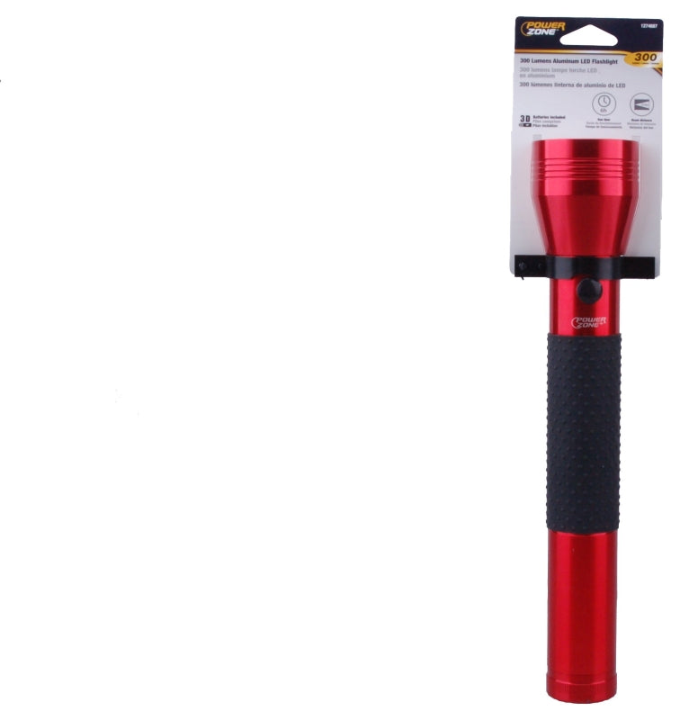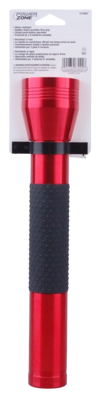 PowerZone 12164 Flashlight, D Battery, D Battery, LED Lamp, 300 Lumens, 210 m Beam Distance, 6 hrs Run Time, Red