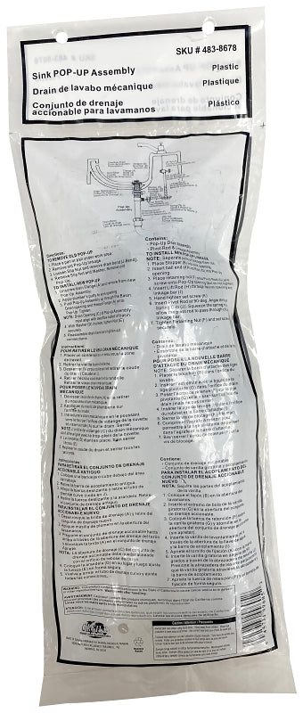 This ProSource 16.46 in L bathroom lavatory assembly is made of plastic. It's a replacement pop up stopper drain plug which is used for in lavatory pop-up drain. The lift rod and all linkage components are included for a complete installation.