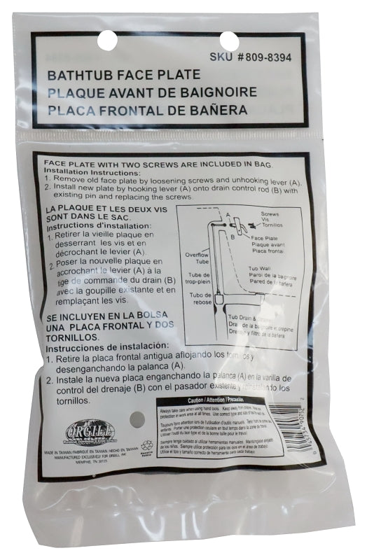 ProSource 24354 Bathtub Face Plate, Silver, Chrome, For: Bath Tub