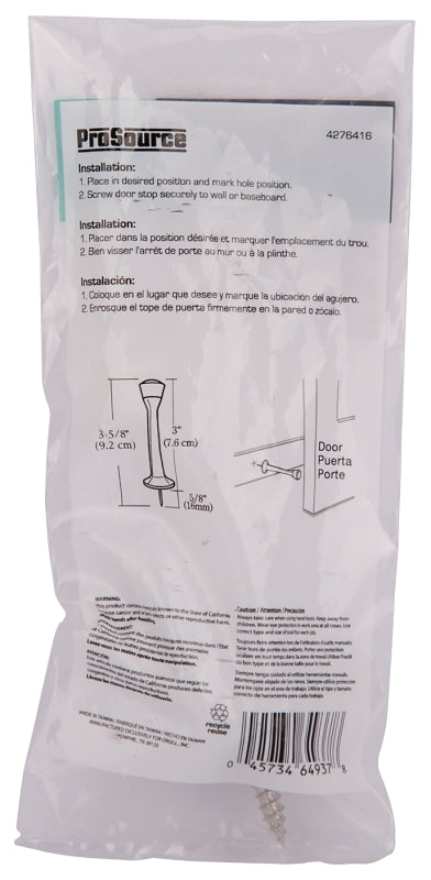 ProSource CL-208P-CH-PS Heavy-Duty Rigid Door Stop, 1 in Dia Base, 3 in Projection, Die-Cast Zinc & Plastic, Chrome