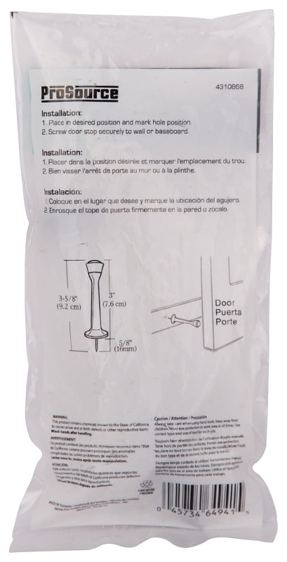 ProSource CL-208P-VB-PS Heavy-Duty Rigid Door Stop, 1 in Dia Base, 3 in Projection, Die-Cast Zinc & Plastic