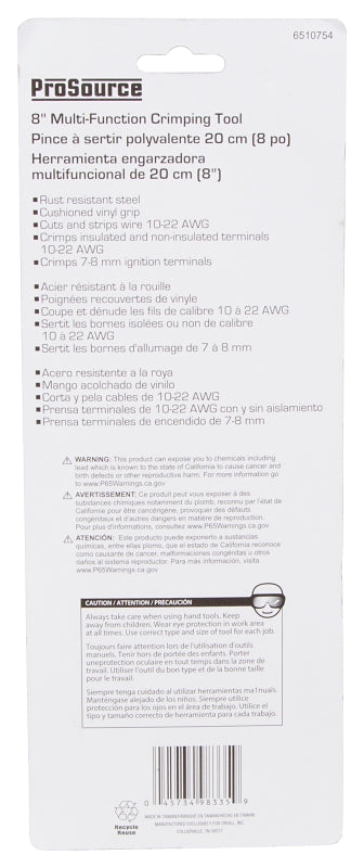 ProSource CP-C8153L Wire Stripper, 10 to 22 AWG Wire, 10 to 22 AWG Stripping, 10 to 22 AWG Cutting Capacity, 8 in OAL