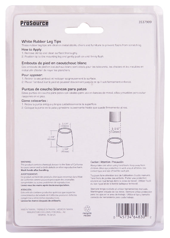 ProSource FE-50647-PS Furniture Leg Tip, Round, Rubber, White, 1-1/4 in Dia, 1-5/8 in H