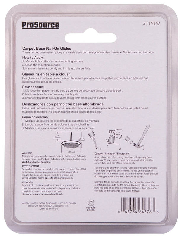 The ProSource furniture glide is ideal for use on wooden furniture legs. Not to be used on chair legs. Nail-on design for easy installation.