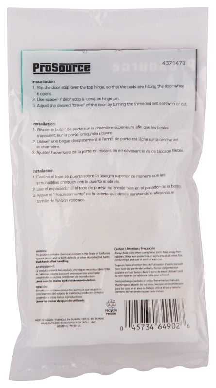 ProSource H20-B020-PS Light-Duty Hinge Pin Door Stop, 2-1/4 in Projection, Die-Cast Zinc & Plastic, Brass