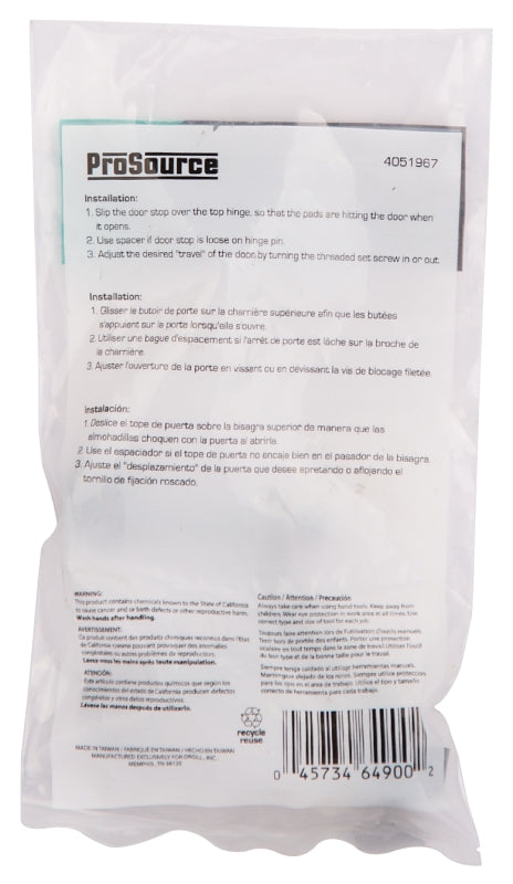 This hinge pin door stop with a plastic tip is ideal for protecting door and wall. Comes with an adjustable screw.