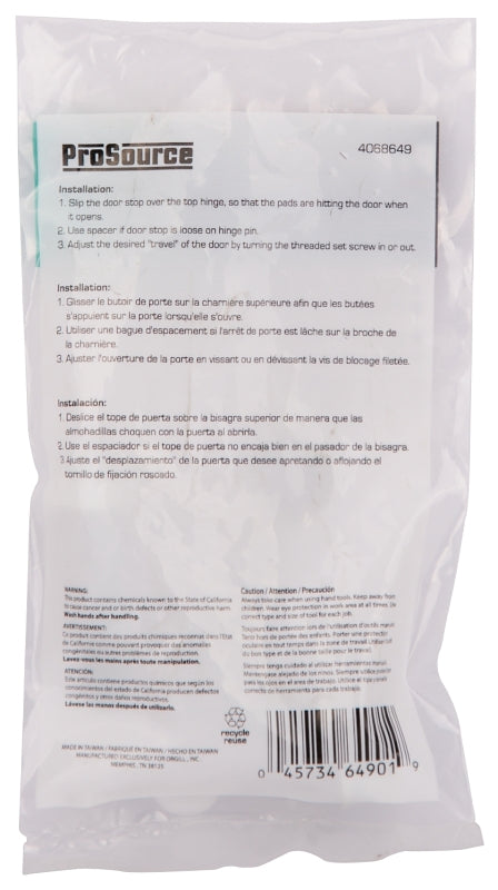 ProSource H20-B022-PS Light-Duty Hinge Pin Door Stop, 2-1/4 in Projection, Die-Cast Zinc & Plastic, Chrome