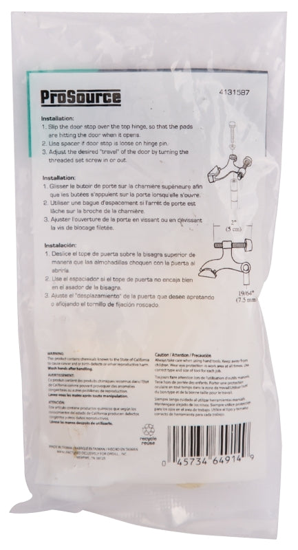 ProSource H20-B040-PS Deluxe Hinge Pin Door Stop, 2-5/8 in Projection, Die-Cast Zinc & Plastic, Polished Brass