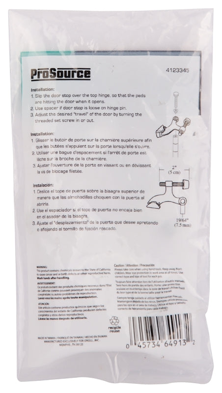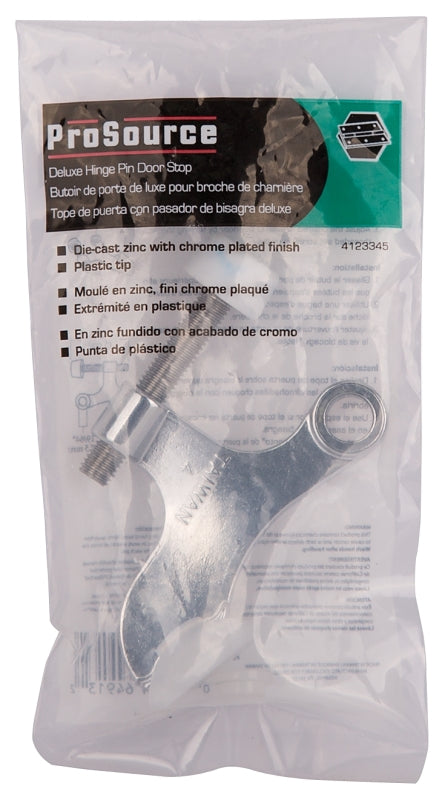 ProSource H20-B042-PS Deluxe Hinge Pin Door Stop, 2-5/8 in Projection, Die-Cast Zinc & Plastic, Chrome