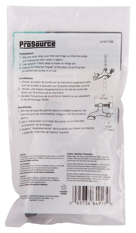ProSource H20-B049-PS Deluxe Hinge Pin Door Stop, 2-5/8 in Projection, Die-Cast Zinc & Plastic, Venetian Bronze