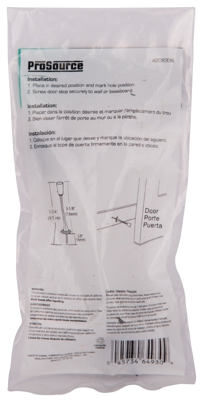 ProSource H20-Z021-PS Heavy-Duty Rigid Door Stop, 3-1/8 in Dia Base, 3-1/8 in Projection, Die-Cast Zinc & Plastic