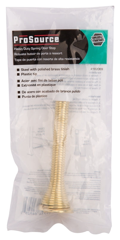 ProSource H62-B040-PS Heavy-Duty Door Stop, 5/16 in Dia Base, 3-1/8 in Projection, Plastic & Steel, Polished Brass