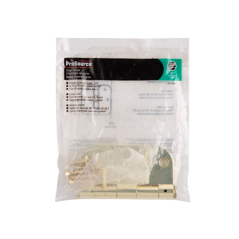 ProSource LR-701-PS Door Hinge, Steel, Polished Brass, Loose Pin, 180 deg Range of Motion, Screw Mounting