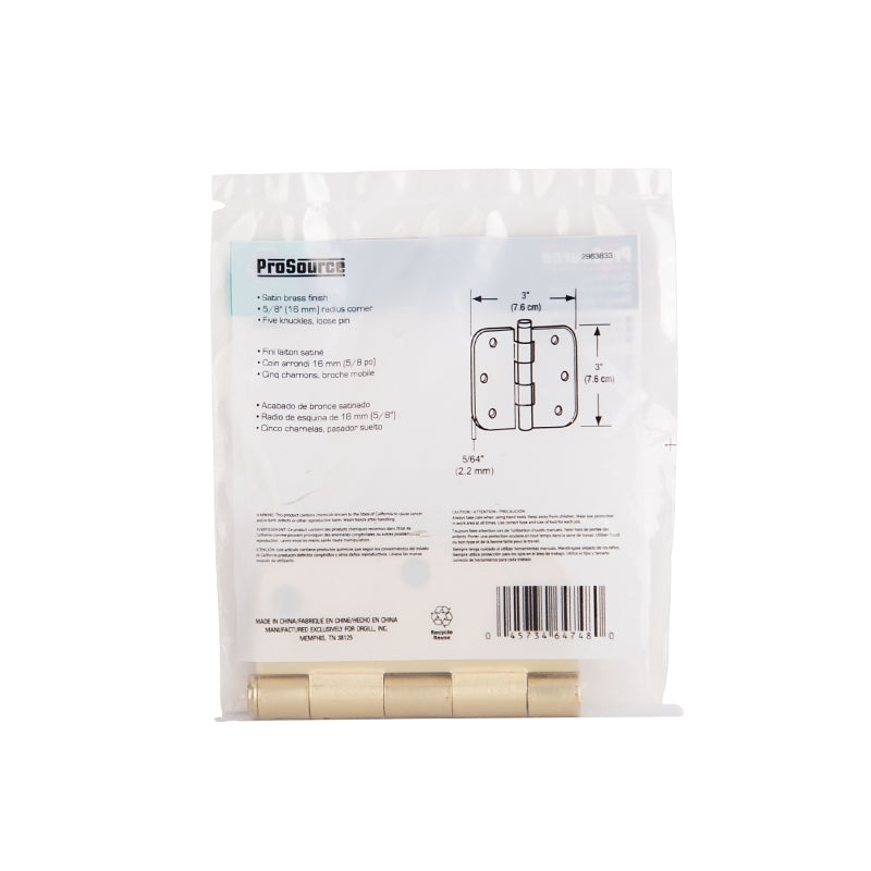 The ProSource door hinge is made of steel. The hinge offers a unique and creative hardware solutions for your home. It's 2.2 mm thick with 5-knuckles and a loose pin..