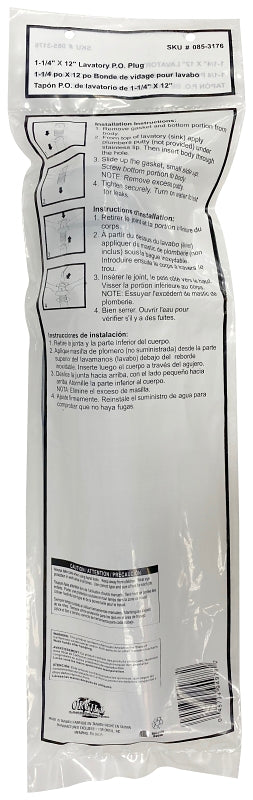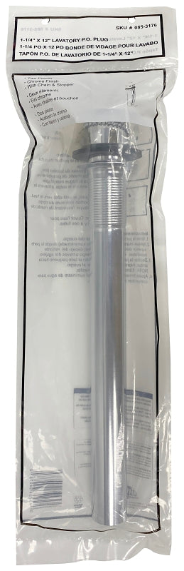 ProSource Lavatory Plug, Pull-Out, Chrome, Dimensions: 1-1/4 in D x 12 in H, Includes: (1) Chrome Body Set, (1) White Stopper and (1) Chrome Chain.