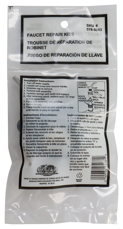 You can repair your leaky faucet with this faucet repair kit. Replacing the worn out parts in the faucet will create a better seal and help prevent water leaks. Fixing your dripping faucet by repairing the cartridge will save water and keep you from buying an entirely new faucet. This repair kit is complete with everything you will need to fix your dripping faucet. All the components are constructed with durability to endure the rigors of everyday use. Installation is an easy do-it-yourself project.
