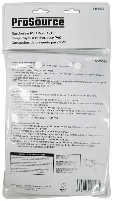 The ProSource PVC pipe cutter has an aluminum body and SK5 cutting blade.