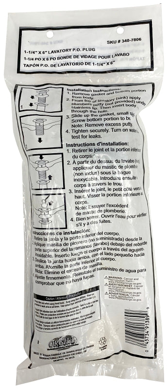 ProSource TW0916 Lavatory Plug, Pull-Out, Chrome