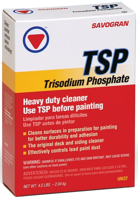 A non-sudsing powdered trisodium phosphate compound that is formulated for heavy-duty cleaning. Preferred by painting and cleaning professionals for removing heavy deposits of greasy grime, smoke, soot stains and chalked paint from walls, woodwork and floors. Removes mildew and mildew stains when mixed with bleach. Also recommended for washing away paint remover sludge.