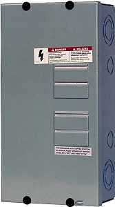 Code-gauge steel enclosure. Single phase, 3-wire, solid neutral, 4 spaces and 8 circuits maximum 1-pole, 2 QP breakers maximum 2-pole, 120/240 V. 10,000 AIR. One piece plated aluminum bus bar. 100% circuit breaker twist outs. Positive load side circuit breaker hook rail. Suitable for use as service equipment when a main breaker (100 A maximum) is back-fed in a branch position and used with main breaker retainer clip No MBR1. When used as service equipment, any unused neutral position may be used for equipment grounding. Rotate entire device 180 deg for bottom feed. Gray enamel finish. 6-5/8 in x 12-5/8 in x 3-1/2 in. UL listed, complies fully with NEC and UL requirements for Class CTL.