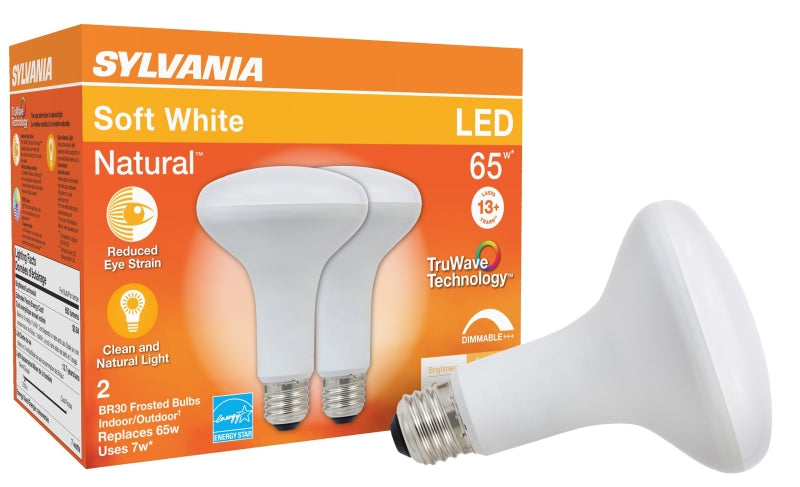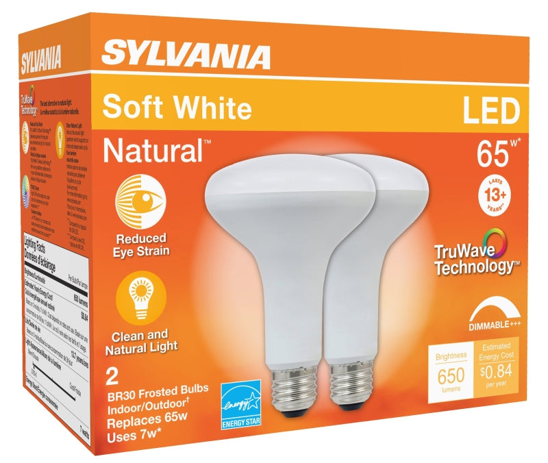 Sylvania 40728 Natural LED Bulb, 120 V, 650 Lumens, 7 W, BR30 Lamp, 65 W Equivalent, E26 Lamp Base, Dimmable