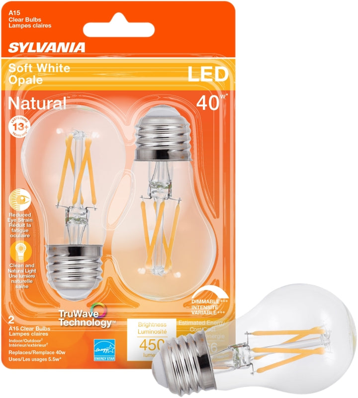 Sylvania 40761 Natural LED Bulb, General Purpose, A15 Lamp, 40 W Equivalent, E26 Lamp Base, Dimmable, Clear