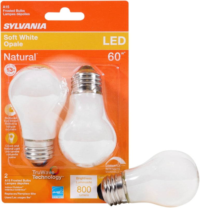 Sylvania 40763 Natural LED Bulb, General Purpose, 800 Lumens, 8 W, A15 Lamp, 60 W Equivalent, E26 Lamp Base, Dimmable