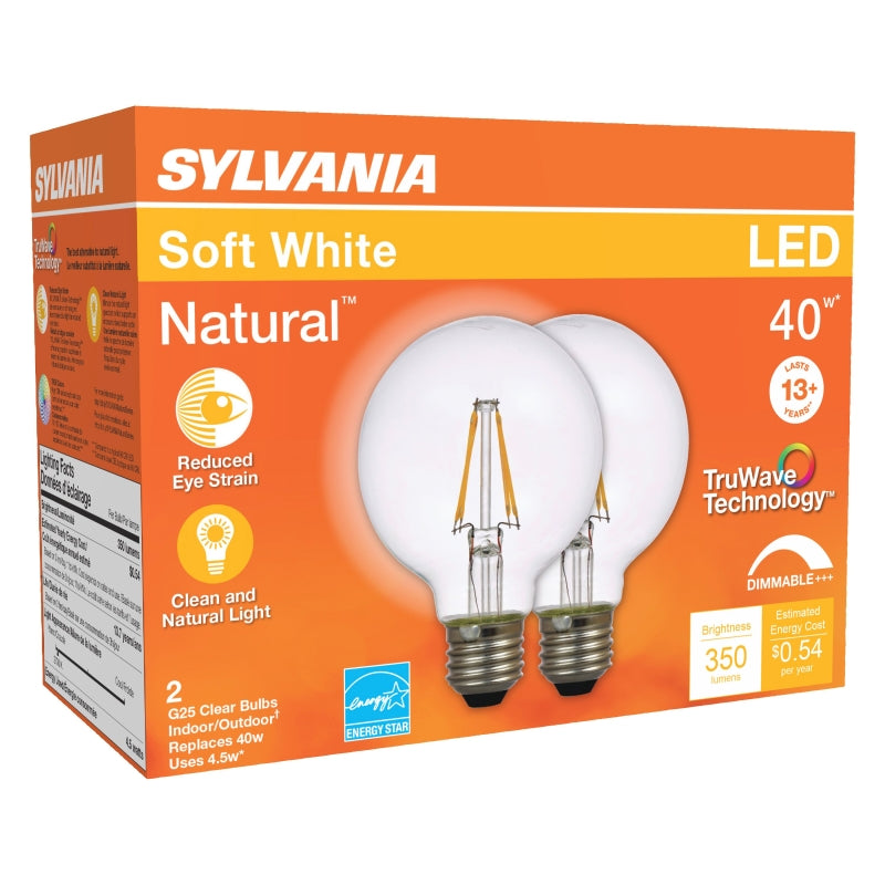 Sylvania 40764 LED Bulb, Globe, G25 Lamp, 40 W Equivalent, E26 Lamp Base, Dimmable, Clear, Soft White Light is backordered and will ship as soon as it is back in stock.