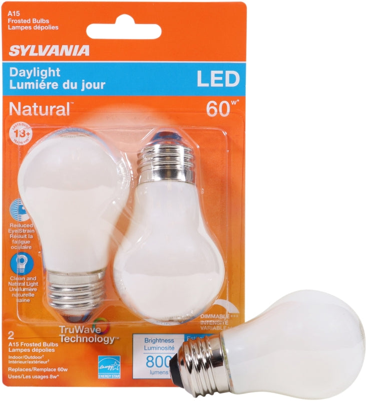 Sylvania 40776 Natural LED Bulb, General Purpose, A15 Lamp, 60 W Equivalent, E26 Lamp Base, Dimmable, Frosted