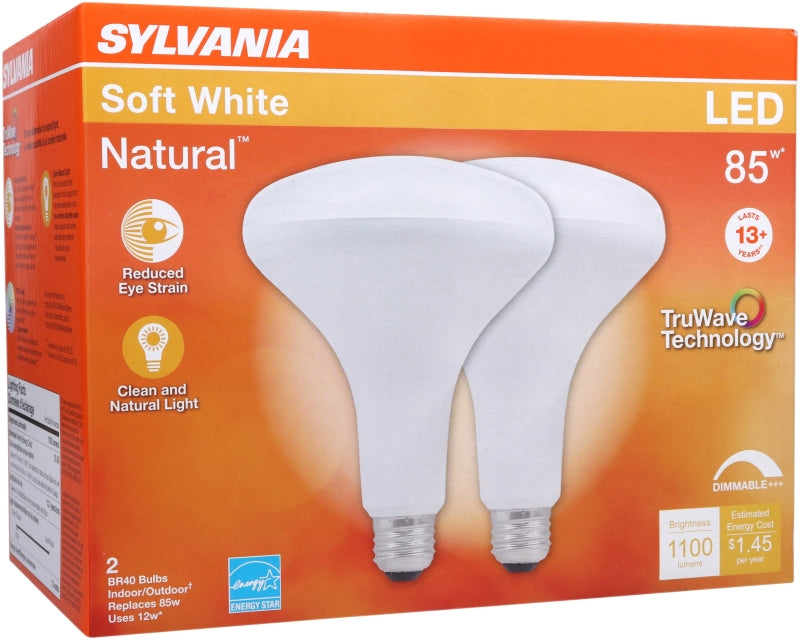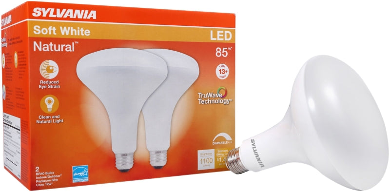 Sylvania 40785 Natural LED Bulb, Spotlight, BR40 Lamp, 85 W Equivalent, E26 Lamp Base, Dimmable, Frosted
