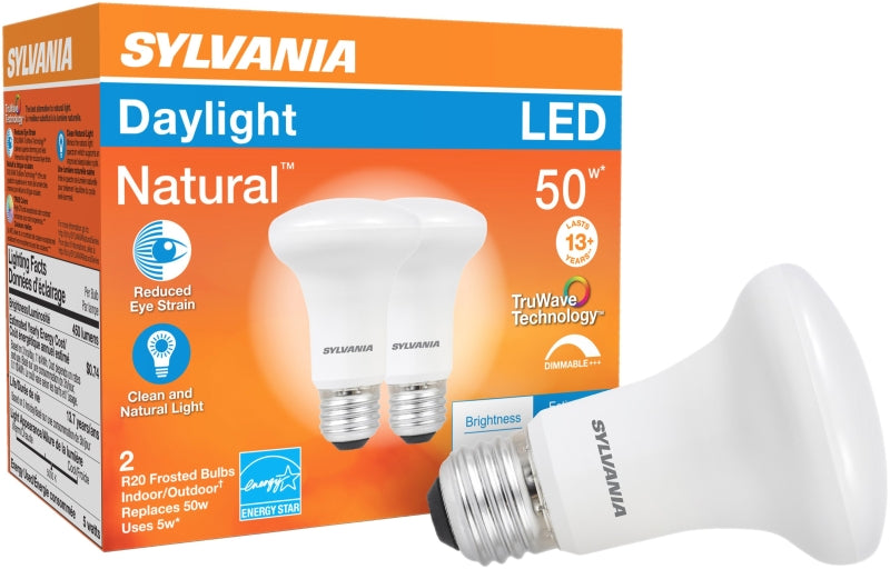 Sylvania 40790 Natural LED Bulb, Spotlight, R20 Lamp, 45 W Equivalent, E26 Lamp Base, Dimmable, Frosted, Daylight Light