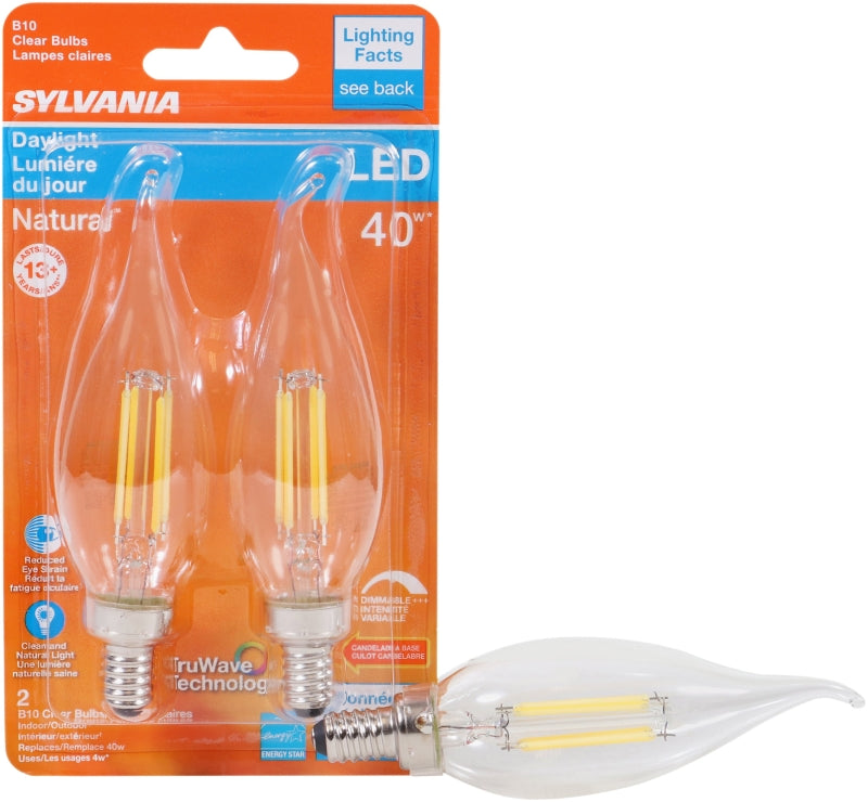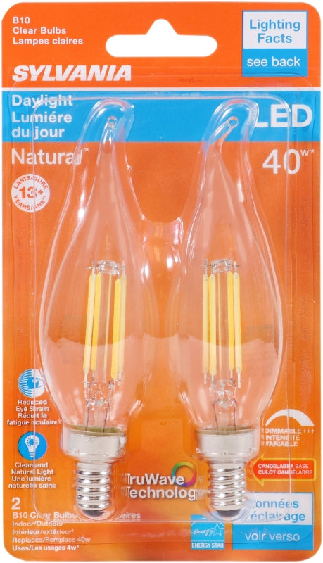 Sylvania 40791 Natural LED Bulb, Decorative, 350 Lumens, 4 W, B10 Bent Tip Lamp, 40 W Equivalent, E12 Lamp Base, Clear