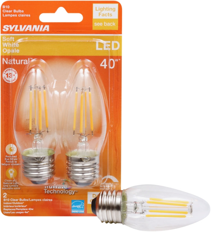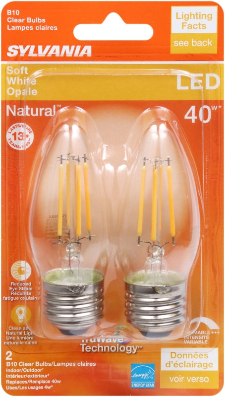 Sylvania 40793 Natural LED Bulb, Decorative, B10 Blunt Tip Lamp, 40 W Equivalent, E26 Lamp Base, Dimmable, Clear