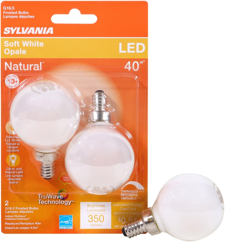 Sylvania 40797 Natural LED Bulb, 120 V, 350 Lumens, 4.5 W, G16.5 Lamp, 40 W Equivalent, E12 Lamp Base, Dimmable