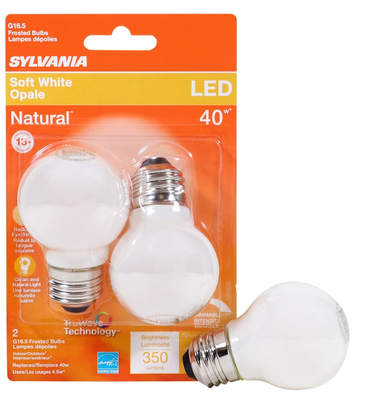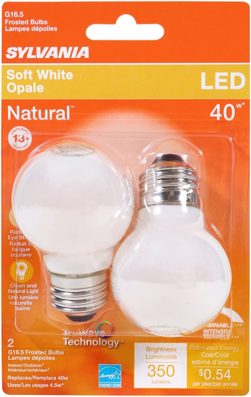 Sylvania 40799 Natural LED Bulb, Globe, G16.5 Lamp, 40 W Equivalent, E26 Lamp Base, Dimmable, Frosted, Soft White Light