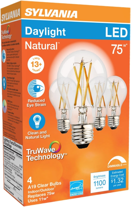 Sylvania 40803 Natural LED Bulb, 120 V, 1100 Lumens, 11 W, A19 Lamp, 75 W Equivalent, E26 Lamp Base, Dimmable