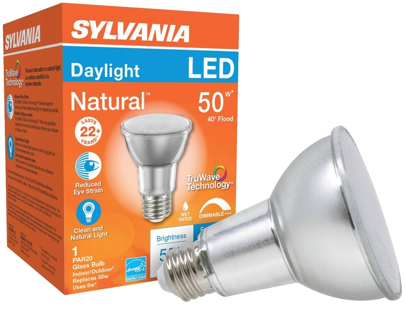 Sylvania 40921 Natural LED Bulb, Spotlight, PAR20 Lamp, E26 Lamp Base, Dimmable, Daylight Light, 5000 K Color Temp