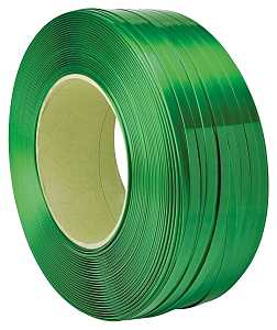 Superior retained tension under humid conditions, resistant to harsh environments. Works in both power strapping machines and hand tools. Coil of size 5/8 in x 4200 ft. Breaking strength of 1600 lb.